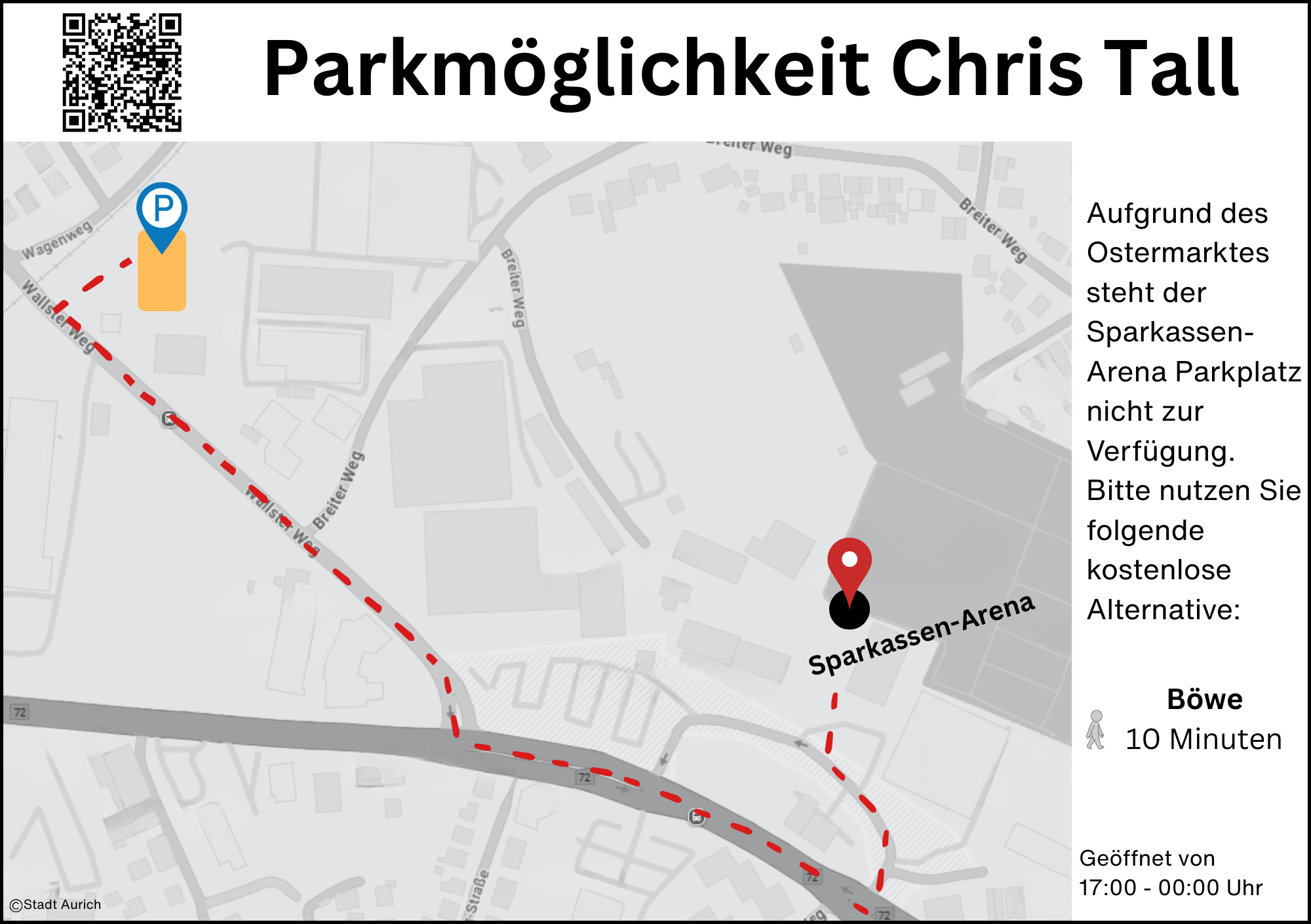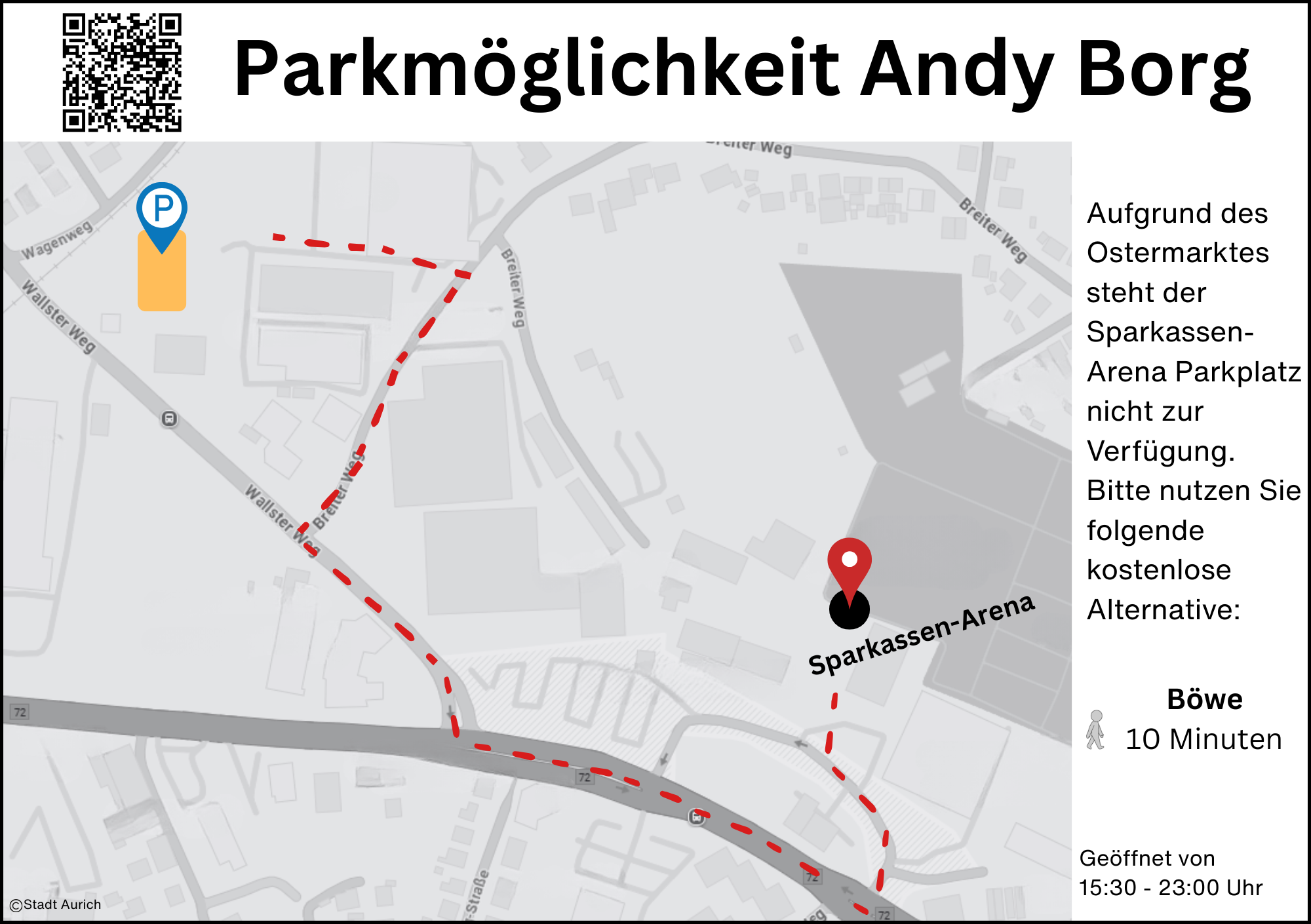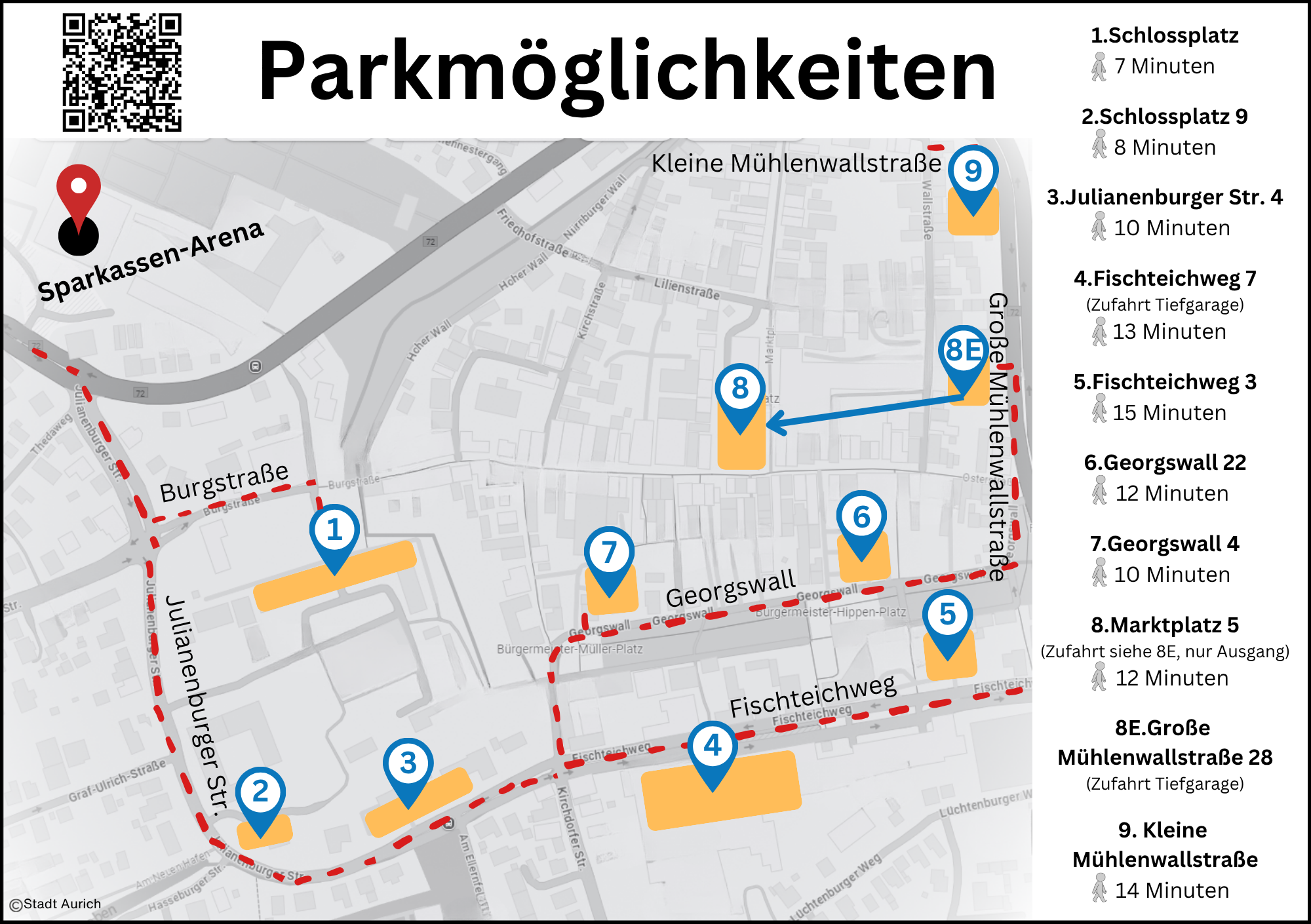 Weitere, teilweise kostenpflichtige Parkmöglichkeiten in der näheren Umgebung sind ebenfalls vorhanden und über das Parkleitsystem einfach zu finden.